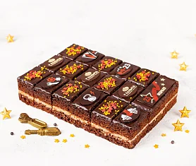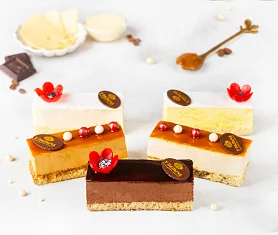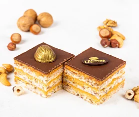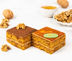 Мука пшеничная в/с, сахар, масло сливочное (18%) (сливки пастеризованные), крем на растительном масле (вода очищенная, масло кокосовое рафинированное дезодорированное, сахар, эмульгаторы: эфиры глицерина, молочной, диацетилвинной и жирных кислот, моно- и диглицериды жирных кислот, целлюлоза микрокристаллическая, соевый лецитин; агенты влагоудерживающие: сорбит, глицерин; молочный белок, стабилизатор карбоксиметилцеллюлоза натриевая соль, соль), сыр творожный (6%) (творог, сливки молочные, масло сливочное, соль, стабилизатор гуаровая камедь, консервант сорбиновая кислота), вода очищенная, яйцо куриное пищевое, вишня с/м, малина с/м, шоколад темный (какао тёртое, сахар, масло какао, эмульгатор соевый лецитин, ароматизатор экстракт ванили натуральный), абрикосы сушеные (курага), семена тыквы, крахмал картофельный, желирующие агенты: желатин, геллановая камедь, пектины; крахмал кукурузный, регулятор кислотности лимонная кислота, ежевика с/м, ароматизаторы, консервант сорбиновая кислота, соль, красители натуральные: кармины, бета-каротин. Произведено на предприятии, на котором также выпускаются продукты, содержащие орехи, арахис, кунжут. ПРИ ПРОИЗВОДСТВЕ ИСПОЛЬЗУЮТСЯ СВЕЖЕМОРОЖЕНЫЕ ЯГОДЫ ВИШНИ, КОТОРЫЕ ПРОШЛИ ТЩАТЕЛЬНУЮ ОБРАБОТКУ, ОДНАКО, В РЕДКИХ СЛУЧАЯХ НЕ ИСКЛЮЧЕНО ПОПАДАНИЕ КОСТОЧЕК И (ИЛИ) ИХ ФРАГМЕНТОВ.