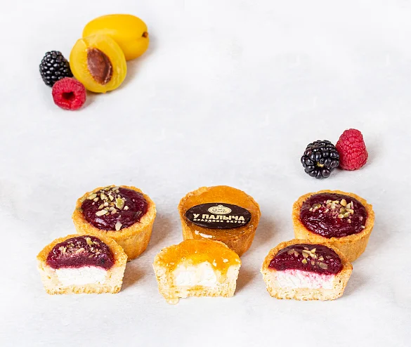 Пирожные Чизкейк У Палыча - это один из самых нежных десертов в удобной подаче. Восхитительное французское песочное тесто на отборном сливочном масле, свежих деревенских яйцах и тростниковом сахаре, с легкой начинкой из нежного сливочного сыра. Пирожные ярко украшены свежим джемом из абрикосов и лесных ягод. Пирожные Чизкейк произведены по английской рецептуре, без выпечки. Это означает, что они всегда остаются очень нежными и полезными. 9 штук в упаковке.