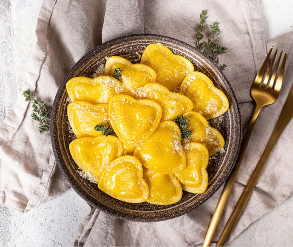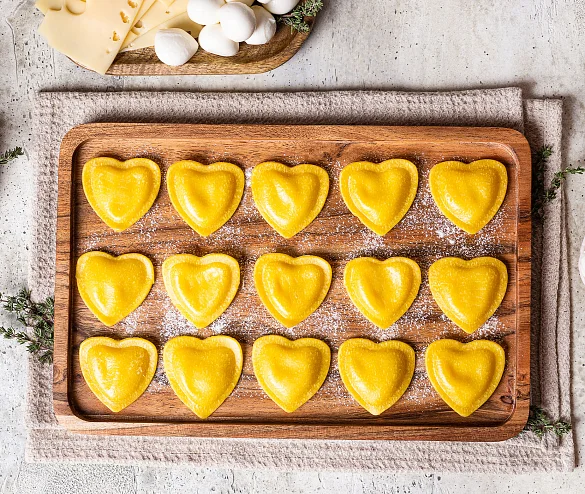 Вкуснейшая свежая паста премиум-качества. Тесто с мукой из твердых сортов пшеницы, привезенной специально из Италии. В тесте только цельные свежие яйца, без порошков. 50% начинки из 4 видов вкуснейшего настоящего сыра без ЗМЖ - пикантного Маасдама, творожного сыра, нежного рассольного и ароматного Пармезана. Готовятся всего 2 минуты - так сохраняются сложные углеводы твердых сортов пшеницы. Полезные медленные углеводы дают ощущение сытости надолго. В упаковке две порции. Идеально с соусом для пасты!