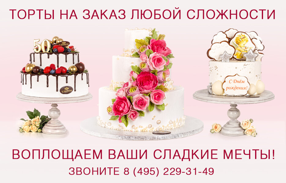Позвоните по тел. 8 (495) 229-31-49 или напишите на почту tort@palich.club— менеджер проконсультирует и примет заказ на Ваш торт.